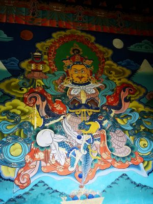Toujours pendant la visite du dzong, dans un temple qui abrite 3 statues gigantesques : celle du bouddha shakyamuni, celle de guru rinpoche (padmasambhava) et celle de l'unificateur, nous nous asseyons pour une petite séance méditative. Au cours de la séance nous avons été rejoints par d'autres visiteurs dans notre pratique Un moment très précieux !