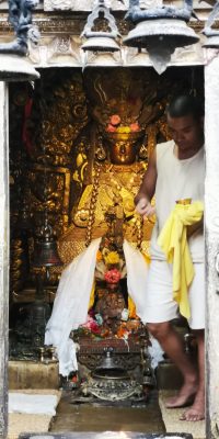 Aujourdhui dernière excursion du voyage, nous allons à Patan et est un quartier sud de Kathmandu. C'est là aussi le lieu d'ancien palais et temple en boiserie. Nous avions vu un endroit semblable au début du voyage, celui ci a été beaucoup moins abîmé par le tremblement de terre de 2015 même si plusieurs temple en bois plusieurs fois centenaires ont été détruit ici aussi.